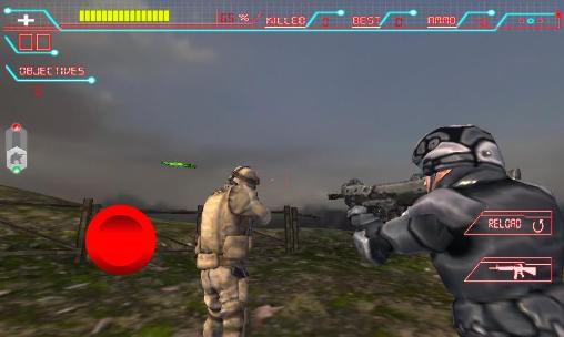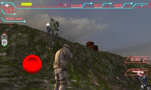 Help an elite forces fighter through many battle missions in the enemy's rear. Destroy enemies with accurate shots of your assault rifle. In this Android game you take part in battles in different parts of the world. Penetrate enemy bases, destroy enemy soldiers, military equipment, and robots. Hack computers and collect classified information. Constantly move around the battlefield, takes cover. Aim carefully and try for the head shots. Use first aid kit to regain health.