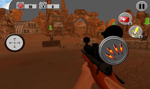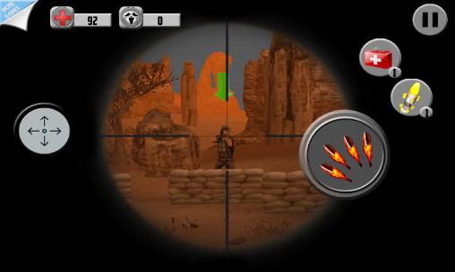 Do dangerous battle missions in different corners of the planet, from hot deserts to the city streets. Destroy terrorists and other enemies. Try on a role of an army sniper in this game for Android. Look at enemies through the scope and pull the trigger at the right moment. Try to shoot the enemy in the head or other vulnerable points. Use covers to hide from enemy fire. Get more powerful weapons in the store. Unlock new mission with more dangerous enemies.