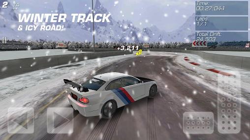 Take part in absorbing drift races on different tracks. Drive a powerful sports car along the track and set the best time you can. Show your driving skills on the slopes of this Android game. You can try your hand on summer asphalt road, snowy winter road, and a deserted highway. Each track has unique characteristics and requires individual approach. Drive at full speed do crazy turns in a controlled drift leaving smoking rubber on the pavement behind you.