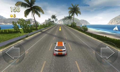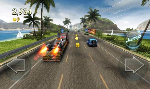 Drive a fast car and speed along a highway avoiding the traffic and collecting the coins on your way. Try to get as far as possible in the limited amount of time in this Android game. Upgrade your cars, increase the parameters of acceleration, speed and fuel economy. Buy new cars of different brands. Pick up bonuses that can speed you up, as well as various weapons that you can use to get rid of the competition, and even shoot down the helicopter chasing you.