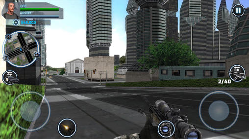 Chase very dangerous criminals in the city streets. Take part in the car pursuits and furious fire exchange with bandits. In this Android game you play as a federal marshal whose task is to hunt the escaped criminals. Chase the bandits in a huge city. Get into a police car, step on the gas and catch escaping criminals. Shoot at the bandits with your gun, gunmachine or a sniper rifle. Complete more and more difficult missions and get rewards.