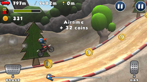 Drive a motorcycle, a buggy, a SUV, or other vehicle. Participate in absorbing race. Drive at full-speed through complex routes of this game for Android. Overcome green plains, snow-capped mountains and other beautiful locations. Each track offers many different obstacles such as hills, huge stones, etc. Do complex tricks and soars into the sky using ramps. Buy new vehicles and upgrade them, improving the performance.