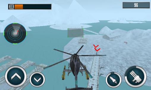 Take pilot's seat of a modern battle helicopter. Take off from an aircraft carrier and do dangerous battle missions. Become a professional helicopter pilot in this game for Android. You'll have a variety of different missions. Fly over oceans and land. Destroy enemy ships, attack enemy bases, blow up tanks, anti-aircraft guns, and other objects. Use your automatic guns, missiles, and other weapons on your helicopter. Watch the radar to detect enemies in time. Unlock new helicopters.