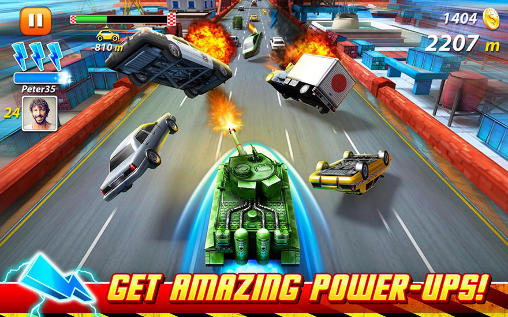 Get behind the wheel of the fast car and speed along city streets trying to escape the police chasing you. Collect coins and useful bonuses. Get ready for a crazy race in this game for Android. The police is chasing you and you need to get to the checkpoint before the cops catch you. Use acceleration, do incredible jumps and use various power-ups to accelerate to insane speeds. Pick up unusual vehicles like a tank, a plane, or a UFO on the track. Buy new cars.
