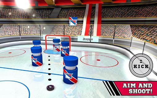 Hit the puck hard and try to score a goal into other team's net. Help your hockey team win the championship. Get out on the ice and take part in exciting hockey matches in this game for Android. Think carefully about your actions. Accurately calculate the strength and direction of the puck and try to hit it in the way so it doesn't hit a hockey player from another team. Look at the arena from different directions to find the optimal path for the puck. Score goals and win.