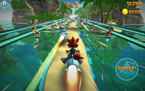 Take part in amazing rocket races and control it on various difficult tracks. Collect a variety of bonuses and overtake your opponents. Speed through city streets, forest roads, snow-covered mountain trails, and other routes in this game for Android. Your rocket can develop a crazy speed. Tack from side to side to dodge your opponents and a variety of obstacles on the road. Take off into the air using ramps. Collect coins and bonuses. Buy bonuses that will help you become a leader.