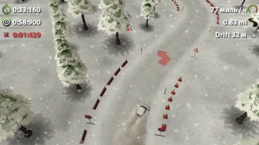 Participate in top-down rally. Beat various tracks. Drive a special sports 4x4 on roads of off-road, through the deserts, snowy terrain and tropical forests. Throughout all this Android game the weather's changing. You need to beat the levels in a limited amount of time. Besides, if you drive poorly, go on the roadside or bump into obstacles too often you'll get time penalty.