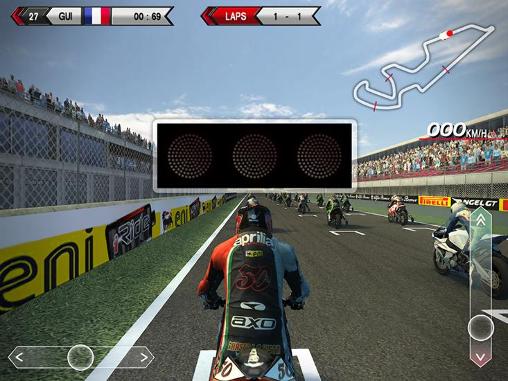 Take part in a world motorcycle race championship. Drive a fast sports motorcycle along realistic tracks. Choose which country or team you want to represent on the championship in this Android game. Use your powerful motorcycle, speed up to the maximum speed and race along the track. Be careful, take turns gently, and don't crush into numerous rivals. Complete stages of the championship and try to win on all the tracks in different countries.