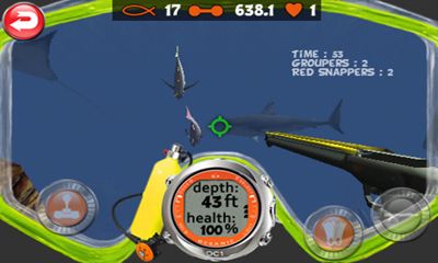 A magnificent simulator of spearfishing. You are under water, in private with sea elements, with living creatures floating round you. Your task - catching of fish. But be extremely attentive and careful. Continually, you are waited by danger, in the face of electric slopes, spiteful, ruthless sharks and other inhabitants of the sea. Also watch oxygen level in a cylinder, it can finish the most unsuitable moment. For replenishment rise to the surface. Management in the game is simple, use can use joystick, or accelerometer.