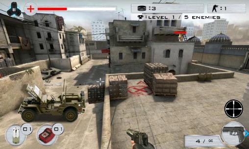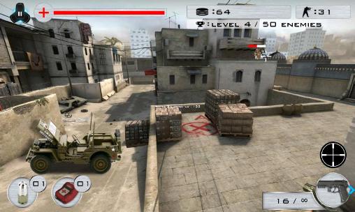 Join the war with terrorism in different corners of the world. Do various missions to destroy the terrorists. In this Android game you act as a special unit soldier. You'll have to fight terrorists and attack their base. Shoot your assault rifle or be a sniper to hit terrorists from afar. Choose a weapon best suited for a particular mission. Buy additional equipment in store to improve your character.