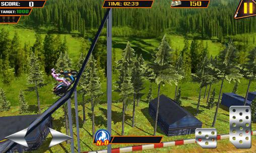 Ride a bike at mad speed along a difficult track as a motorcyclist. Overcome a variety of obstacles and collect bonuses. Take part in extreme motocross competitions in this dynamic game for Android. Accelerate your motorcycle and ram obstacles on the track. Go through narrow bridges, jump from high buildings, do somersaults and other dangerous stunts. For each trick you get extra rewards. Unlock new tracks and get powerful bikes to set records.