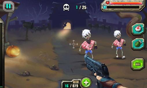 All the villagers turned into zombies. Very hungry zombies. Don't let them catch you! Shoot the hordes of the dead and run! In this Android game you will see the consequences of mad experiments of irresponsible scientists. In the lab that worked on creation of zombies happened an accident. One of the scientists caught the virus and became a zombie. He spread the infection and infect all the inhabitants of the village, except for you. Defend your life! Shoot bloodthirsty zombies, earn money, and buy more powerful weapons.