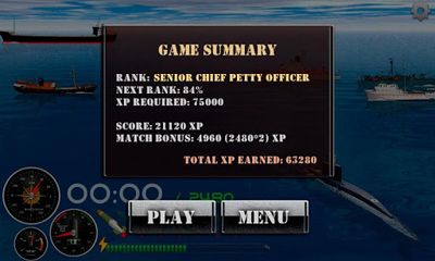 Take off periscope! Emersion! Go to resolute attack to an enemy escort! Arcade naval game, where you need to operate a submarine and to heat the enemy ships from escorts. Your submarine is the last defender of the native coast. Carry out the given tasks and accumulate experience points. Your valorous service will be rewarded by new ranks and the general honor. At the game: 12 naval ranks in career, 10 various types of military ships, 4 types of sunk ships - obstacles when firing, 3 types of weather conditions.