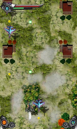 Fly a well-armed jet plane. Destroy waves of enemy planes that are attacking you. Fire your various weapons. Defend your country against the attacks of enemy fleet in this Android game. Take off on your fighter and shoot down planes of the aggressors using your automatic guns, missiles and other weapons. Evade enemy fire. Use energy shield and bombs to protect your plane. Upgrade your fighter. Compete with a huge flying fortress at the end of each level.