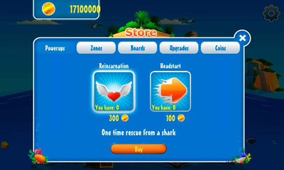 Slide on a water smooth surface submitting waves and getting away from sharks. Plunge into ocean depths in search of treasures, collect coins and enjoy unostentatious game process.
