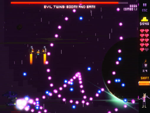 Dodge bullet hell situations in a rhythm arcade by 2Players Games. The game tells a sad love story, where the protagonist fights alien forces. The main objective is to take vengeance on the alien offender. Help the hero in this difficult task and travel space with him. Everything in game follows the rhythm carefully adjusted to difficult situations by the developers.