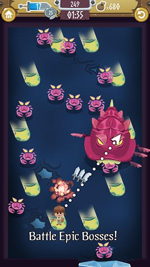 Help the hero win many fights with monsters and servants of the evil sorcerer. Shoot out the hero so he destroys a variety of enemies. Battles in this Android game look like pinball. Shoot the hero out so that he hits the enemy and does damage. The hero will move on the screen and bounce off obstacles until it reaches a safe zone or perishes. Try to destroy as many enemies with a single attack as possible. Beware of strong bosses and aim for their weak points.