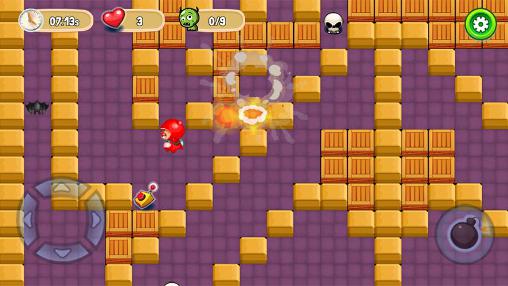 Help the hero destroy many opponents with bombs. Place bombs in mazes and lure your opponents into traps. The goal of this game for Android is to blow up all your opponents on the level. You can your opponents have bombs. But be careful and don't explode on your own bomb. In addition you can blow up brick walls. Be attentive, as you destroy them, you'll find useful bonuses like bonus bombs, new types of bombs, invulnerability, etc.