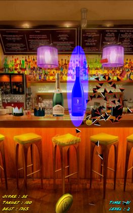 Smash as many bottles in the bar as you can in a limited amount of time. In this Android game you can have fun in a bar and smash a lot of bottles. Your task is to smash the bottles into smithereens using coins. Each bottle you smash gives you points. If you hit the bottle with a shield on it, it won't brake and you'll loose some points. The game'll provide you with a cozy bar, nice music and relaxing atmosphere.