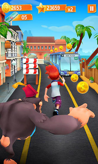 Control a hero running along megalopolis streets. Collect golden coins, dodge the traffic and overcome a variety of obstacles. Rely on your reflexes and guide the hero through absorbing paths of this Android game. Help the hero run down the street and dodge the oncoming trucks and buses. Jump onto the roofs of buses and guide the hero along them. Jump over obstacles and slide under them. Get a variety of bonuses like jetpack, comfortable shoes, coin magnet, etc.