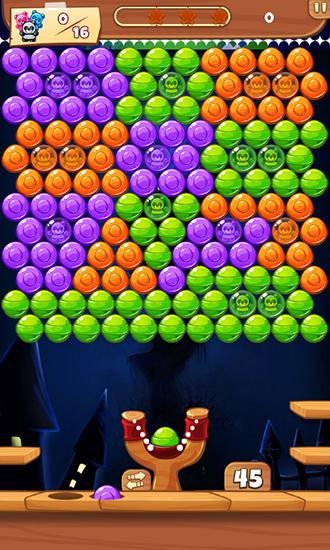 Embark on a journey through beautiful levels of this game for Android decorated in Halloween style. Explode bubble candy and Halloween pumpkins. Aim carefully before each shot of your candy gun. The more candy you blow up with one shot, the more points you can get. Collect useful bonuses and use them in difficult situations. Set records.