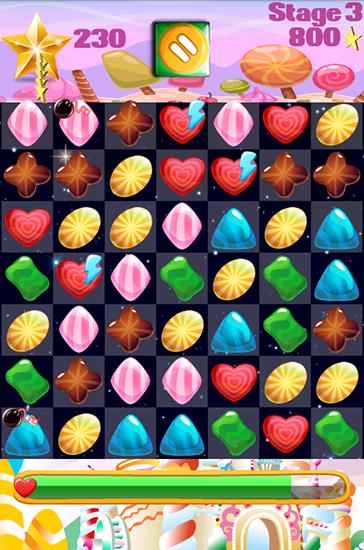 Match rows of 3 or more same sweets. They will explode and you'll get points. Use your logic to complete levels of this entertaining and colorful game for Android. Swap colorful sweets and try to make as long rows of same sweets as you can. This will allow you to get special bonuses like lightning that can destroy a whole row on the screen. Each level will be more difficult the last one.