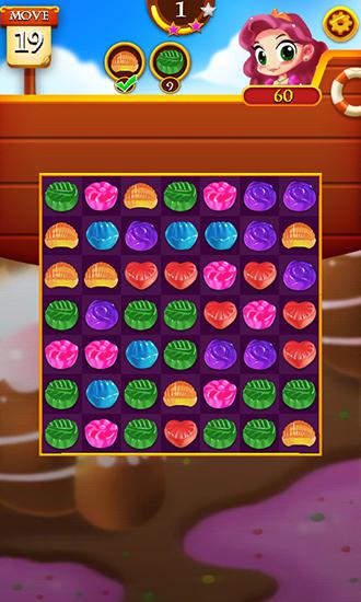 Move colorful candies along the screen by swapping them. Match 3 and more same candies. Help the beautiful princess and her loyal butler in this game for Android. Heroes travel the magical candy kingdom in a balloon. Princess loves delicious candy. Try to match as long rows of same candy as possible to give them to the princess. Use a variety of bonuses and fun power-ups to quickly complete tasks and unlock new levels.
