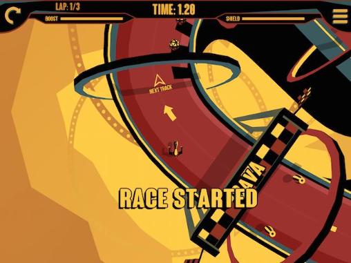 Futuristic races with unusual color theme from Umber Games studio. At the start you have a practice race that'll explain you how to control your vehicle. That's not as easy as it may seem at the first glance. To do dizzying turns you need to tilt your device so it'll to rotate not the car, but the track floating in the weightlessness. Overcome all the obstacles and win this incredible race!