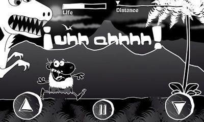 E Caveman represents a quite dynamic arcade game for Android-devices, in which you need to help one savage to avoid a meeting with teeth of a dinosaur. What a destiny people had, if it was possible to call them so in those days. There was no roof over the head (caves weren't distributed in a mortgage), and there were also creatures around so many that it was necessary to sleep standing on the feet and with open eyes, and each lived day could appear the last one.
