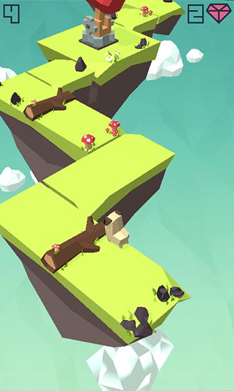 Guide the funny hero along a winding track made up of floating rocks. Don't let the hero fall from the track and overcome obstacles on the way. In this game for Android you'll have to try to guide your hero as far as possible along an absorbing track. turn in the right direction, go around traps like, for example, large hammers. Guide the hero through narrow bridges. Collect gems, you'll need them to unlock new characters like dinosaurs, dogs, etc. Practice and set new records.