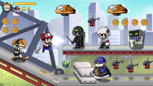 Control a character running through colorful levels. Jump from one platform to another, avoid traps and dangers and defeat your enemies. Get ready for a dynamic journey through different worlds in this Android game. You'll see mountain villages, icy wasteland, the cities of the future, and so on. Collect coins and various bonuses, dodge dangers like circular saws, laser beams, bombs, etc. Use your lightsaber and fight various enemies, from karatekas and ninjas to sea soldiers and evil robots.