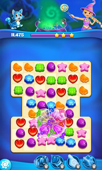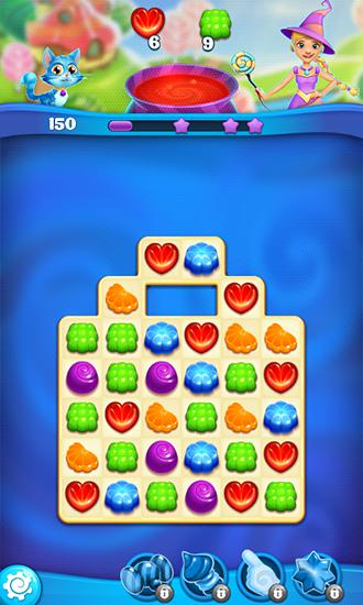 Match rows of tasty sweets by swapping them. Form rows of 3 and more same candy to make them disappear. Travel through the magical land with a cute witch, the main character of this game for Android. Help the witch find new recipes for delicious potions and defeat cunning enemies on your path. To do that use your brain and try to create the longest rows of same sweets as possible. That way the heroine will have more magical powers to defeat enemies.