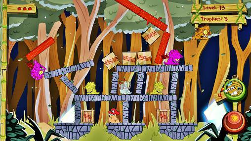 Explode a variety of monsters filling all the locations. Place powerful bombs near monsters and destroy various constructions. Clear the levels of this fun game for Android from the monsters. You have a stock of powerful bombs at your disposal. Plan your every action and place bombs at the optimal points of the screen. The stock of bombs is limited, and if you can't destroy all the monsters you'll fain the level. Monsters can be on platforms and other structures. Try to destroy the structure with explosions.