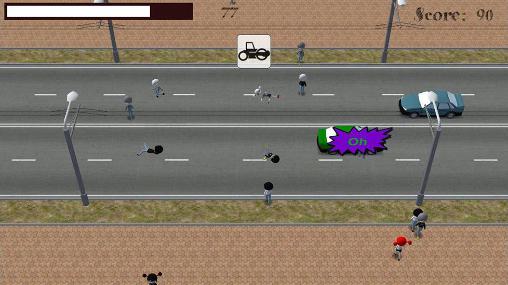 Punish the annoying pedestrians who are crossing the road where it's not allowed. Call for different vehicles so they hit the hurrying pedestrians. In this game for Android your task is not to allow any pedestrian get away from just punishment. Pedestrians run across a busy road. Touch the edges of the screen to make cars appear on the road. Calculate the right moment so that the car hits many pedestrians as possible. Get points for every pedestrian. Earn bonuses like road roller and truck.