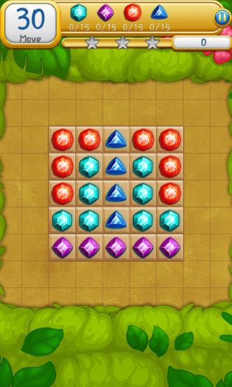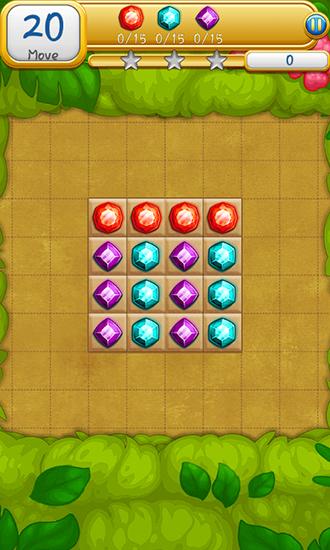 Collect sparkling gems by connecting same ones with a line. Search for adventure and gems in this Android game. Connect same gems to make them disappear. To complete each level you have to collect a certain number of gems of different kinds. Each new level will be more difficult than the last. You'll have to collect gems in a maze, unblock locked tiles and so on. Useful bonuses will help you achieve your goal.