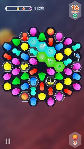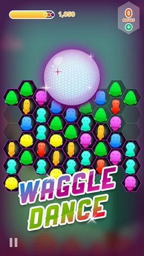 A game in "three in a row" genre, where small bees are dancing funny to disco music.