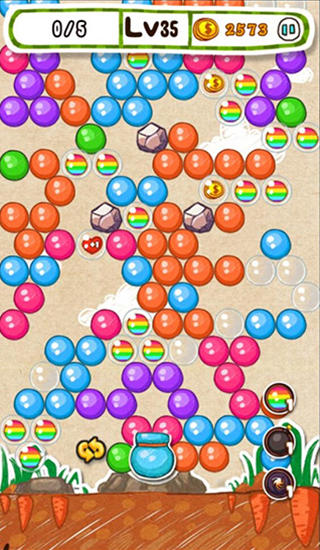 Shoot bubbles out of your special cannon into a group of bubbles at the top of the screen. Match 3 and more same bubbles. Pop hundreds of drown bubbles in this fun game for Android. Try to shoot colored bubbles to form the largest group of same bubbles possible and blow them up simultaneously. This will allow you to earn more points and get useful bonuses that will help you pop bubbles and set records for completing levels.