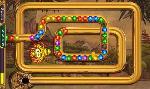 Help a cute dragon shoot colorful marbles. Form chains of 3 and more same marbles to blow them up. In this Android game you need to don't let the chain of colorful marbles disappear into the hole. The marbles are moving along a very winding path. Dragon shoots marbles onto a chain. If 3 or more of the same marbles are next to each other, they will explode, and the movement of the whole chain will slow or reverse. Match many marbles to get various bonuses.
