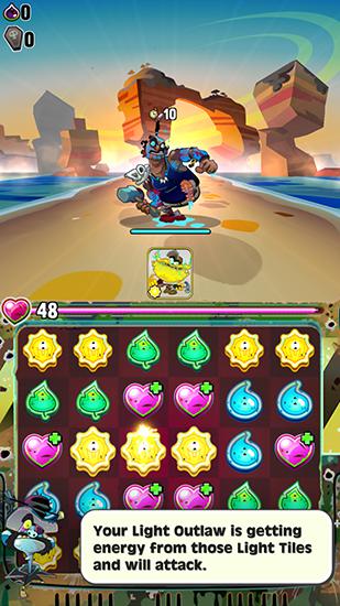 Explore the dustland with a team of outcasts. Fight various opponents forming rows of different objects. In this game for Android you'll have adventures in a fantasy world with fearless bounty hunters and cunning rogues. Create your collection of outcasts with unique abilities. To make your team attack the enemy swap colorful tiles matching at least 3 same tiles. Join a guild and fight alongside your friends.