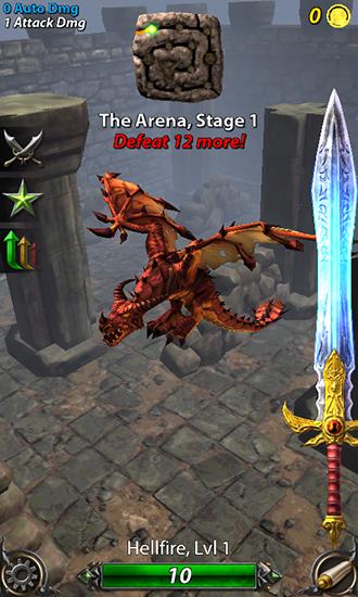 Fight different kinds of powerful dragons. Tap the screen as fast as possible and slice the winged beasts with your sword. In this game for Android you can become a famous dragon hunter. Move from one picturesque level to another. On each of them you'll have a fierce battle with a unique dragon. You'll fight fire-breathing, stone, mechanical, and many other types of dragons. Unlock new weapons. With every epic weapon and every dragon has a fascinating story associated with it.