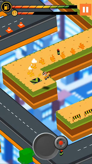 Help a bank robber on a fast car who's trying to loose his tail. Collect gold coins and go around obstacles on your way. Guide your hero through winding streets, overpasses hanging in the air, and other locations of this Android game. Do sharp turns and don't fly off the road. Go around roadblocks, barriers, and other obstacles. Don't let the police catch up with the hero. Use ramps and jump over dangerous areas on the track. Collect coins scattered on the highway and a variety of bonuses. Unlock new levels.