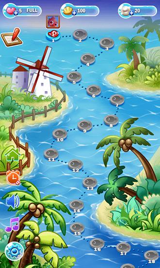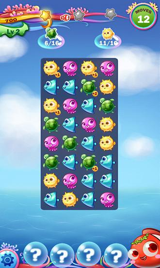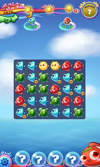 Swap colorful fish. Match 3 and more same ones to make them disappear and get points. Go on a treasure hunt to the most distant corners of the global ocean in this game for Android. Get ancient pirate treasure and sunken treasure. To do this you'll need to sort fish. Try to match as many same fish as possible to complete the level in a minimum number of moves. Numerous bonuses will help you with this.