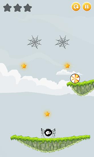 Help a funny little spider eat tasty candy. Guide its movement and use spiderwebs to collect delicious candy. Collect all the candy hidden on interesting levels of this exciting Android game. Your goal is to guide the spider through the whole level interacting with objects on the level and using spiderwebs. Tap the web to grab the candy. Second tap will releases it. Also don't forget to collect all the stars on the level to get points and complete tasks.