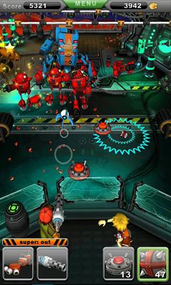 adolescent years the stories of teachers did not always seem to be particularly interesting, and the world of your own fantasies often captivated you more deeply than speeches of the teacher. One of the luckless students of the Fort Courage game took a step further and imagined the whole world with time travels and clashes with the entire detachments of enemies! The main goal is to protect your fort from enemy hordes. Not only your manual dexterity and impressive arsenal of weapons but also you partner with whom you can share all the hardships of warfare will help you in task implementation. Three fantastic sceneries are waiting for you; complex, dangerous and bloody battle will take place there. You will kill zombies, skeletons and fruits of scientific experiments within the walls of the secret lab, exterminate pangolins in shadowy jungles and cannibalize robots that have just came down the assembly line. 18 kinds of rivals, including three rather dangerous bosses, each to every location, are waiting for you.