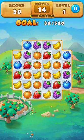 Swap delicious fruits which filled the board. Make lines of 3 and more identical fruits to burst them and gain points. Start an unforgettable adventure around a wonderful fruit land in this Android game. Each stop on your way will take you to the next level where you will observe a new configuration board and hundreds of bright fruits. Try to complete the level at minimum time or minimum amount of moves. Numerous bonuses which you can recieve if you make long rows of fruits will help you in this game.