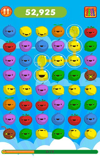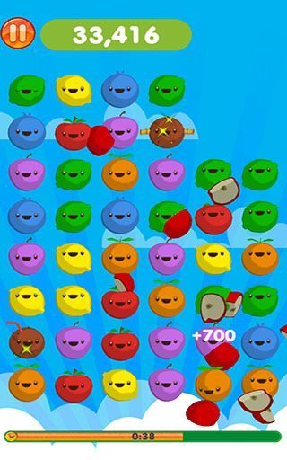 A is very simple: you need to connect among themselves as many fruits of one color as possible, then they are cut or disappear in a wave of powerful explosion. Cheerful graphics, unostentatious music and beautiful special effects will pleasantly surprise you. Besides, you have a chance to find confidential iridescent fruit which will bring you many pleasant bonuses.