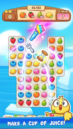 Swap colorful fruits, tasty candies, cakes, and other sweets. Match rows of 3 and more same things. Prepare yourself a glass of delicious fruit juice, exploring bright fruits in this game for Android. Try to match ranks of as many same sweets and fruits as you can. Destroy them and earn more points and get useful bonuses. Use them to complete levels and defeat treacherous enemies as fast as possible. Set new records!