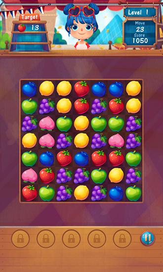 Match 3 and more same fruits to remove them from the screen. Use different bonuses to achieve record results. Help the heroine of this game for Android assemble a collection of fruits from around the world. Travel to different countries that have amazing fruit. To complete a level you need to collect a certain amount different fruit. Try to complete tasks using as little moves as possible. Match as many fruit as you can. Collect all the fruits in the world.