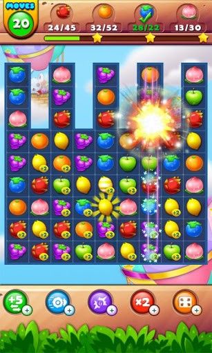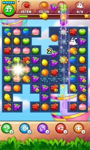 Combine 3 and more some fruits in a row to get points. Embark on a magical journey through magical farms in a fairyland. Collect beautiful fruits, magical seeds and funny rabbits. As you beat levels of this colorful Android game you need to combine same fruits or seeds up to 3 in a row to blow them up. Combine more than 3 fruits and get different bonuses like bombs that destroy fruits around them.