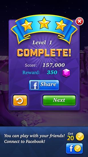 Move colorful gems by swapping them. Match 3 or more same gems into rows. When they blow up they give you points. Blow up hundreds of jewels in this Android game. Try to get as many points as you can with limited number of moves you have. Beat more and more difficult levels and unlock the crystal bird. Use a variety of bonuses, like lightning or a magic hammer to get even more points. Set records and get to the top of the world player rankings.